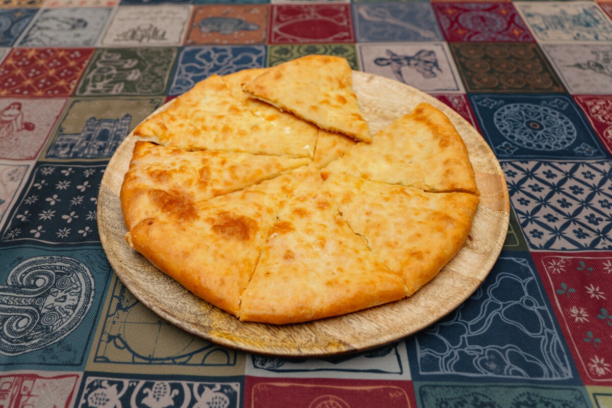 Traditional Georgian cheese pie with a golden crust and melting cheese filling
